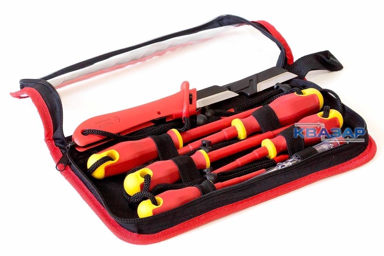 Универсальный набор отверток для проведения ремонтных и обслуживающих работ в электросетях. Инструмент обладает качественной изоляцией и подходит для проведения работ под высоким напряжением — до 1000В.