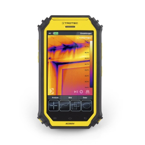 Для проверки электрических установок, диагностики зданий или профилактического обслуживания - тепловизионная камера Trotec AC060V является идеальным, всегда готовым к использованию устройством измерения температуры для быстрого и неразрушающего обнаружения проблемных зон. Trotec AC060V отлично подходит для тяжелых условий эксплуатации на строительных площадках.